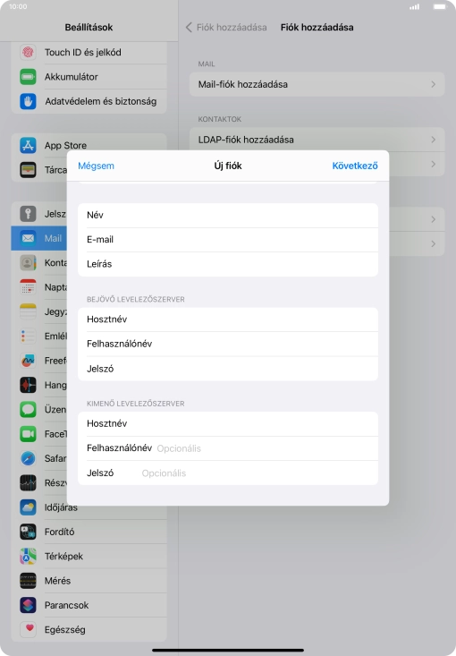 Válaszd a Mail-fiók hozzáadása lehetőséget.
