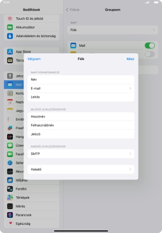 Válaszd a Mentés lehetőséget. Beállította a rendszer az e-mail-fiókodat. Amennyiben további beállításokat kívánsz alkalmazni a bejövő és kimenő szerverhez, az alábbi lépésekkel folytasd.