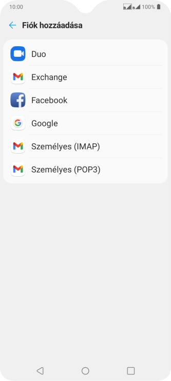 Amennyiben a kijelzőn ez a képernyőkép látható, az e-mail-fiókodat felismerte a rendszer, és automatikusan beállította. Kövesd a képernyőn megjelenő utasításokat további adatok csatolásához, és fejezd be az új fiók létrehozását.