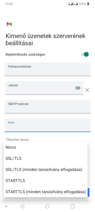 Kattints a „Jelszó” alatti mezőre, és írd be az e-mail szolgáltatód kimenő szerverének jelszavát.
