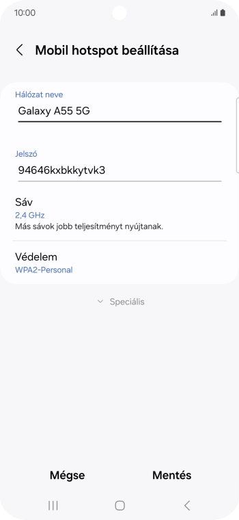 A telefon Wi-Fi hotspotként való használatával meg tudod osztani a telefon internetkapcsolatát Wi-Fi-n keresztül más készülékekkel. A telefon Wi-Fi hotspotként való használatához be kell állítanod a telefon internet-hozzáférését.